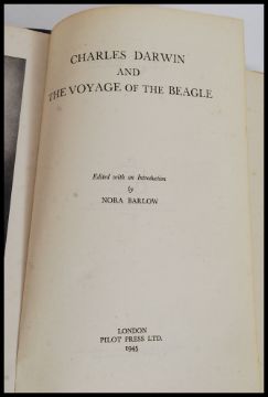 A collection of books relating to Charles Darwin. To include: Journal of Researches Into the Natural History and Geology of the Countries Visited During the Voyage of H.M.S. Beagle Round the World, Under the Command of Capt. Fitz Roy R.N. Darwin, Charles, Published by John Murray, London (1890) Used Hardcover, On the Structure and Distribution of Coral Reefs; Also Geological Observations on the Volcanic Islands and Parts of South America Visited During the Voyage of HMS Beagle Charles Darwin, Published by Ward Lock, UK (1890) Used Hardcover First Edition & Charles Darwin And The Voyage Of The Beagle. Edited with an Introduction by Nora Barlow, Pilot Press 1945