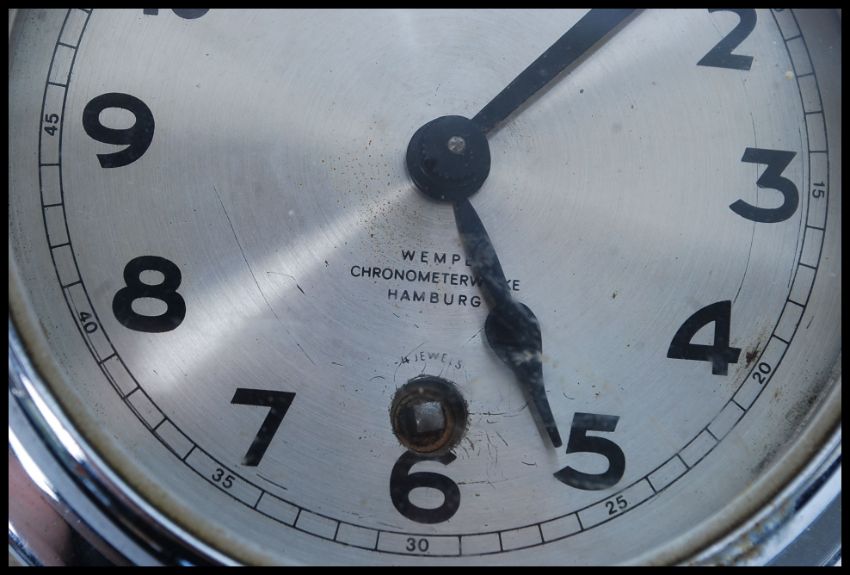 A mid century German ships bulkhead chronometer clock by WEMPE Hamburg. The chrome case with glass front and silvered dial.
