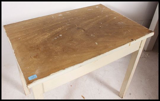 A retro mid century scrub top shabby chic painted pine kitchen table raised on squared legs