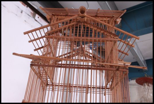 A vintage / retro Chinese bamboo bird cage. 52cm tall.