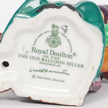 A Royal Doulton Miniature Figurine entitled ' The Old Balloon Seller ' model number HN2129 with markings to the base. H10 cm