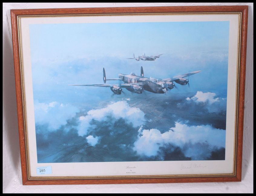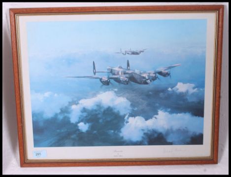 A framed and glazed print of a Lancaster Bomber in flight together with a street scene print of liverpool being framed and glazed