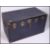 A vintage 20th century steamer trunk - suitcase chest. The heavy blue body being metal bound with central clasp. H51 x W92 x D52cm