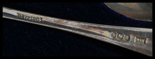 A cased set of six silver hallmarked teaspoons of golfing interest by Walker & Hall. Bearing hallmarks for Sheffield 1933. Total weight 82.2g