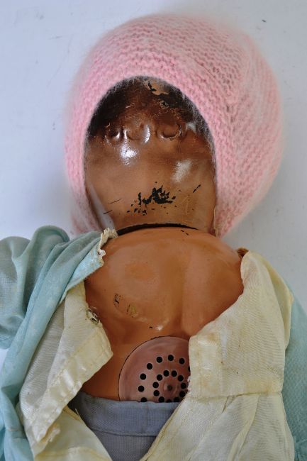 DOLLS: Two vintage dolls one a composition bodied and headed 1950's doll with clothing and an Andy Pandy style faced cloth doll. (NOTE: The two teddy bears featured in the image are NOT present within this lot)