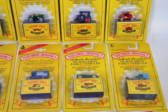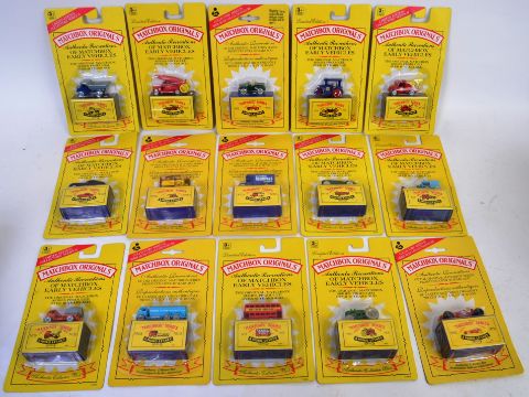 MATCHBOX MOKO LESNEY: A collection of 15x REISSUE Matchbox Moko Lesney carded unopened diecast model ' Originals ' (Authentic Recreations). All sealed.