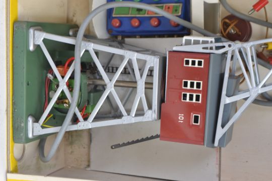 MARKLIN: A fabulous Marklin railway trainset tinplate 7051 electric Crane. Appears to be unused, with all interior packing, within the original yellow and black box.