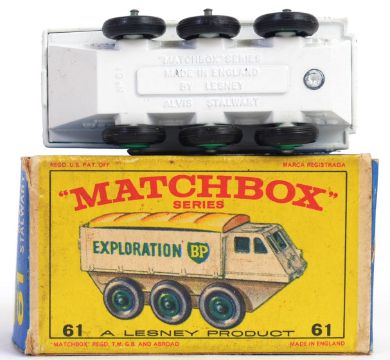MATCHBOX LESNEY: An original vintage diecast model Matchbox Series Lesney No.61 Alvis Stalwart. Within the original box. Black plastic tyres, green hubs