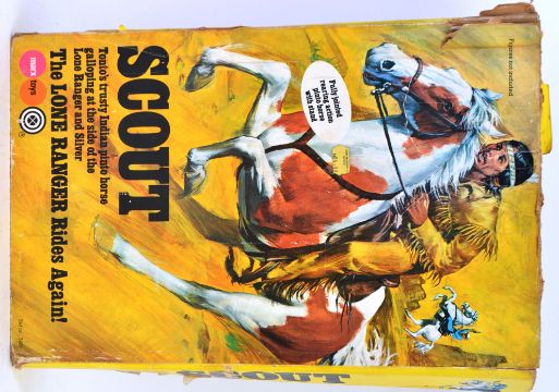 MARX LONE RANGER; an original Marx Lone Ranger series ' Scout ' horse playset figure within the original box (worn), along with a Lone Ranger Marx Indian figure (with clothing).