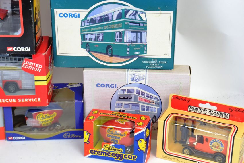 DIECAST: A good collection of assorted boxed diecast models to include: Corgi Detail Cars, IXO models, Burago, Trackside, Corgi Fire Heroes, Matchbox, Lledo and others.