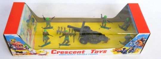 CRESCENT TOYS: An original rare ex-shop stock MINT unopened, unhandled set of Crescent Toys No. 3000 Commando Set plastic figures. The display box remaining as bright and crisp as the day it was made. Supplied within the original trade cardboard sleeve. As new.