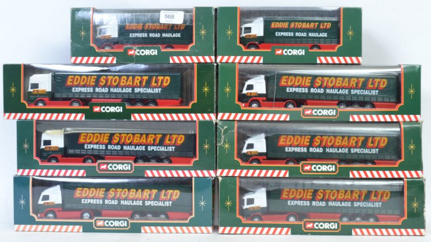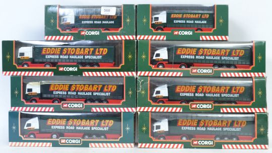 CORGI EDDIE STOBART: A fabulous collection of 8x original Corgi Eddie Stobart lorries - each within the original box; 59508 (x2), TY86705, TY87001, 59504, 59503, and 59504 (x2)