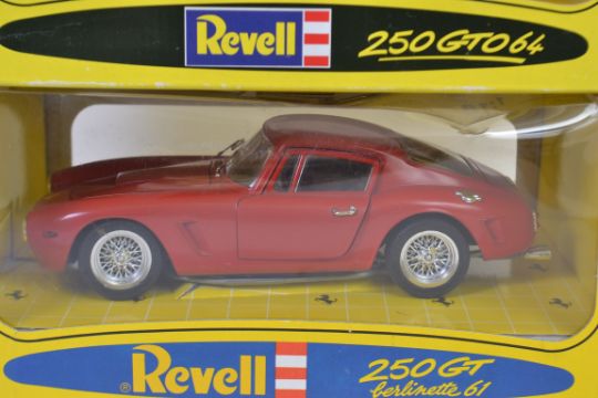 REVELL 1:18: 2x Revell Jouef Evolution 1:18 scale diecast model cars - each a Ferrari - 250 GTO '64 and 250 GT '61. Both within the original boxes.