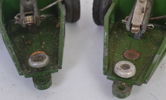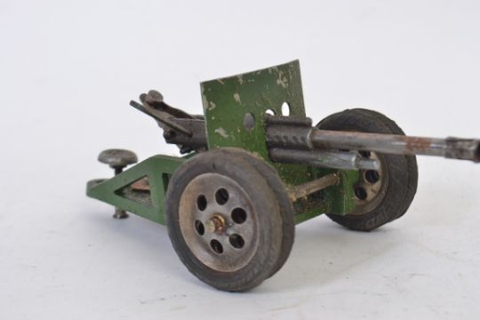 ASTRA TOYS; Two pre-war Astra Toys Anti Aircraft guns - each precision made toy standing on rubber wheels with highly detailed features. Both with original labels.