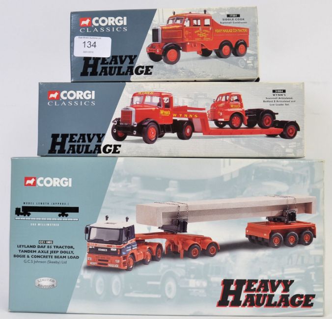CORGI HEAVY HAULAGE; A collection of 3x Corgi Heavy Haulage diecast model sets - CC11802, 17501 Siddle Cook, 31004 Wynn's. All with paperwork, within the original boxes.