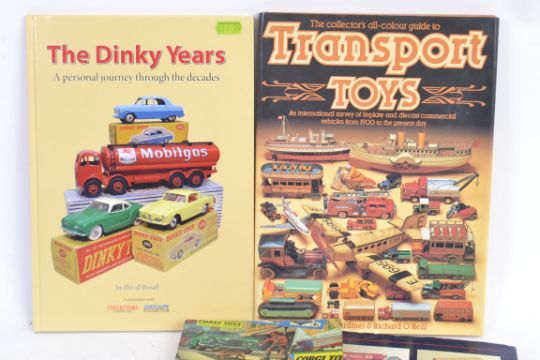 DIECAST REFERENCE BOOKS: A collection of 5x assorted diecast / Dinky / Corgi reference books - ' The Dinky Years ,' ' Transport Toys ,' Corgi Toys ,' ' Dinky Toys ,' and ' British Diecast .'
