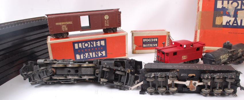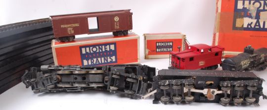 LIONEL; A fabulous original vintage Lionel American Made train set. Comprising of; 5342 New York Central locomotive and tender, along with two Shell tankers, NYC0047 carriage, Pennsylvania 0044 carriage, instructions booklet, track and various other accessories. Some within the original boxes.