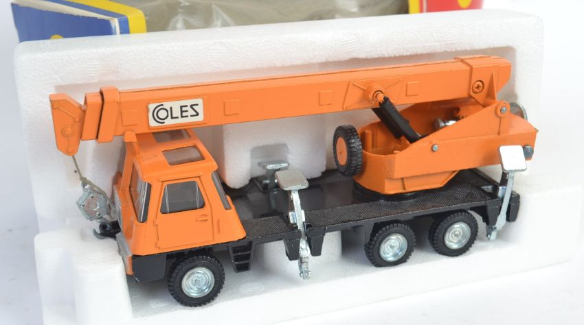 DINKY: Vintage Dinky Toys 980 Coles Crane Hydra Truck, in orange. Within the original display box. Box a little grubby, but model appears near mint. Original box.