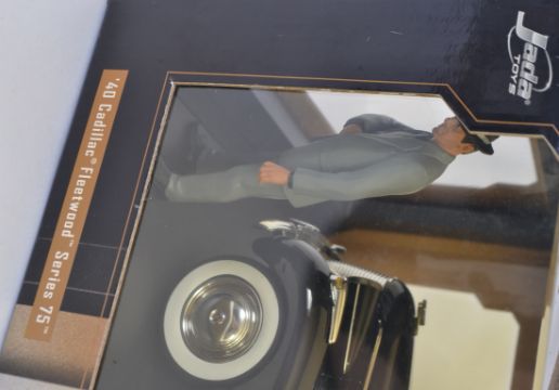 THE GODFATHER: A Jada Toys 1:18 scale diecast model ' The Godfather Cadillac Fleetwood ' model car and figure. Appears to be unremoved from the original display box.