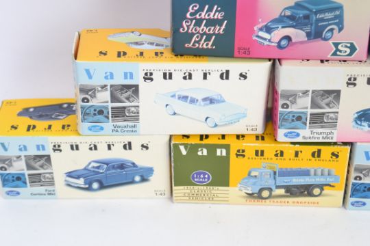 VANGUARDS: A collection of 14x boxed 1:43 scale Vanguards diecast models - each within the original boxes (boxes slightly sun faded, models fine.)