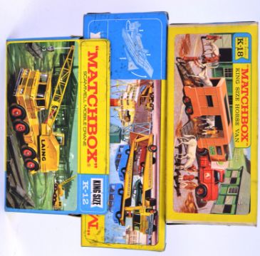 MATCHBOX KINGSIZE; A collection of 3x boxed Matchbox Kingsize diecast models - box numbers K-12, K-8 and K-18. Each within the original display boxes.