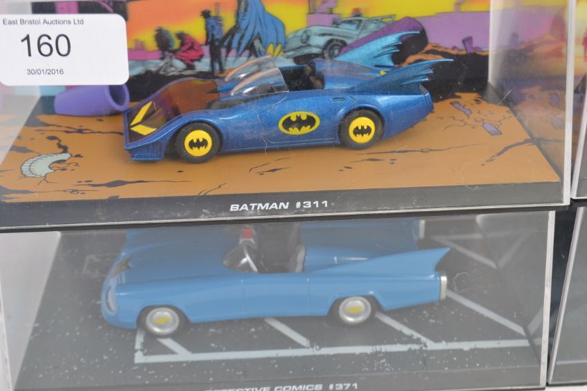 BATMAN: A collection of 4x Batman DC Comics 1:43 scale diecast model cars, each within the original display case box - 311, 456, 371 and Batman Forever model.