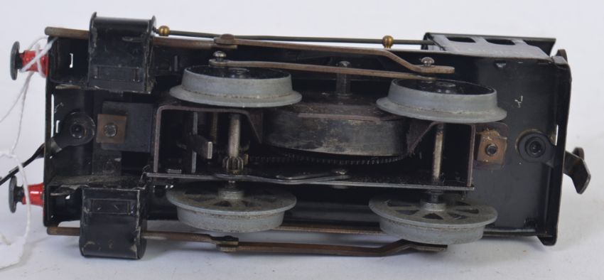 HORNBY: An original vintage clockwork tinplate Hornby 0 Gauge 60199 black livery railway trainset locomotive.