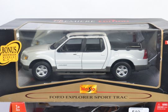 1:18 SCALE: A collection of 4x 1:18 scale diecast models - Maisto Premiere Edition Ford Explorer, Burago Diamond Collection Alfa 8C, Revell Wiesmann - Roadster, Maisto Premiere Edition BMW Z8. All within the original boxes.