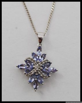925 silver gem set floral pendant on 16" silver chain.