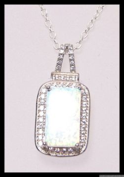 A 925 silver pendant necklace with Art Deco style drop pendant inset with an opalite losenge surounded by CZ. Length 18 inches. Weight 5.9g