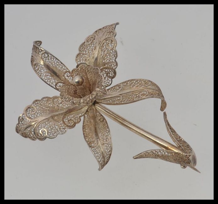 An early 20th century silver czech filigree large brooch in the form of a flower. Total weight 10.7g
