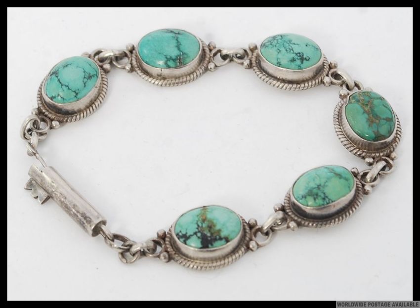 A silver and turquoise cabachon link bracelet stamped 925. Weight 20.6g.