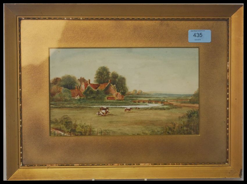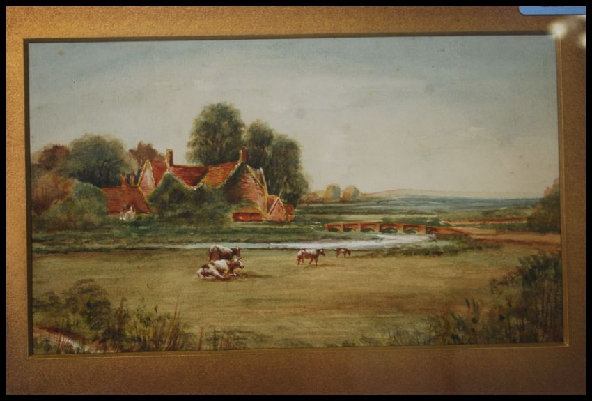 An early 20th century watercolour painting depicting a charming rural countryside cottage scene. Framed and glazed, unsigned. H15 x W25cm