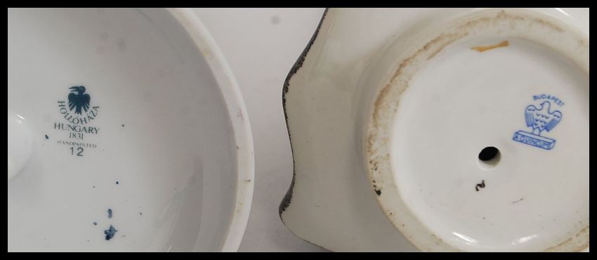 A collection of Hungarian ceramics to include Hollohaza, figures and a good Cobalt Blue coloured ginger / tobacco jar.