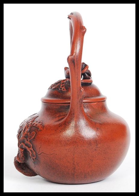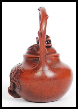 A 20th century terracotta Contemplation Yixing Teapot having a recess containing a Buddha inside, four character marks to base please see images. H11cm