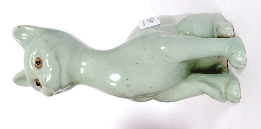 A West Country pottery figurine of a cat in the Galle style reputed to be Aller Vale. Unmarked with glass eyes.