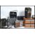 A collection of vintage and retro cassette players along with two teak effect cassette tape boxes