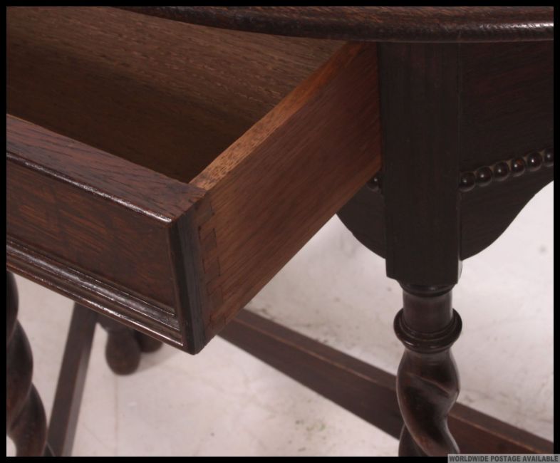 An excellent quality 1920's oak drop leaf circular barleytwist side / occasional table. Raised on barley twist legs with gate leg action, all of solid oak construction