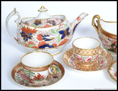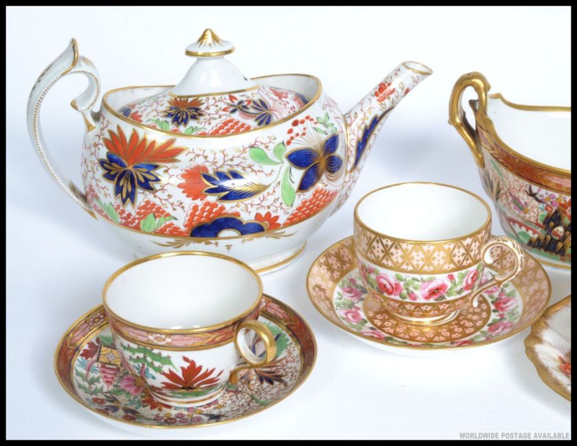A 19th century Worcester (Barr, Flight & Barr) large twin handled bowl with 2 cup and a saucer along with a similar teapot. Also a Crown derby 19th century cup and saucer and another matched cup and saucer