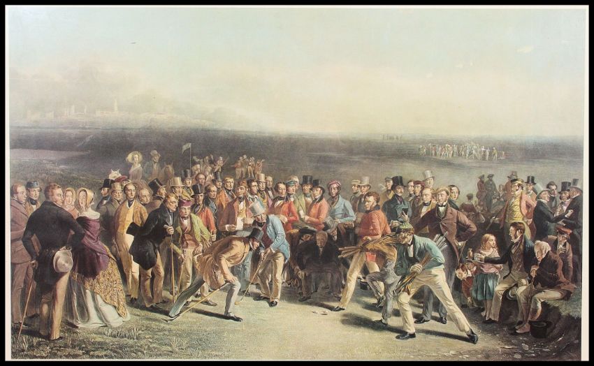 A late 19th century Mezzotint print depicting ' The golfers ' St Andrews with key plate 1815. Measures 55cms x 85cms