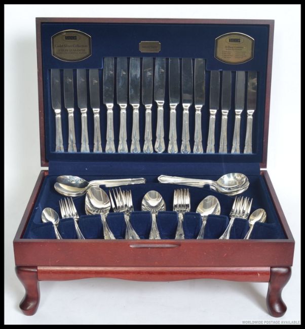 A good quality Viners canteen of cutlery complete and in the original presentation canteen on raised cabriole legs