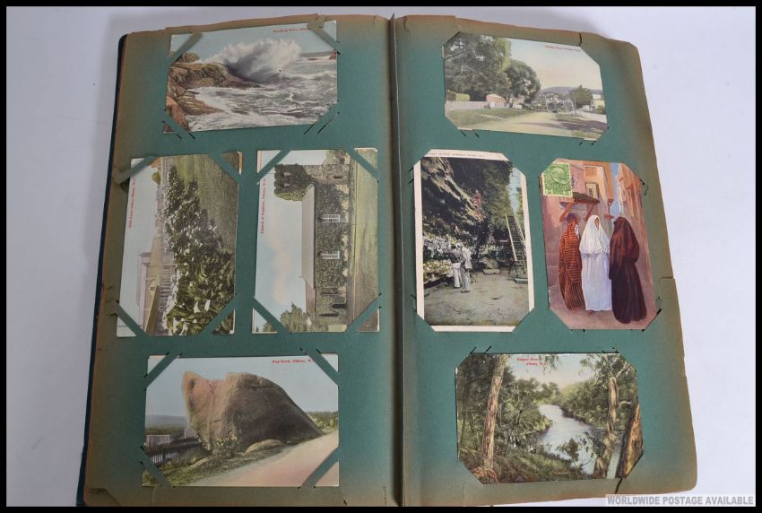 A large vintage postcard album, filled with assorted postcards - topographical, views etc.