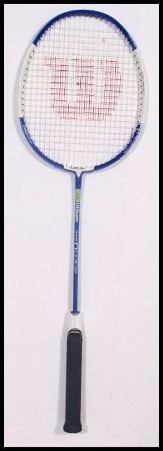 An oversized shop advertising Badminton racket / raquet by Wilson, bearing two signatures