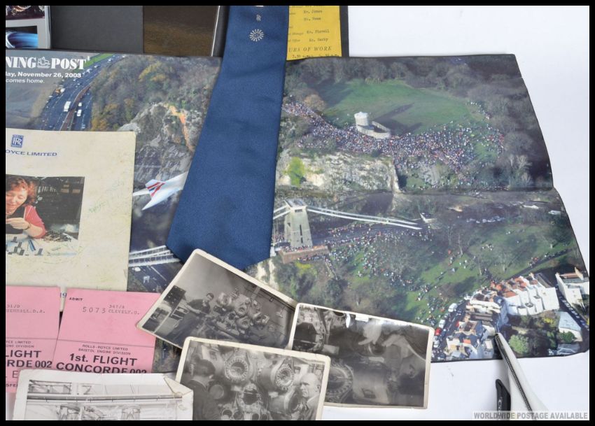A collection of items relating to Rolls Royce and Concorde to include 25 year service tie and tie pin, Concorde tickets etc