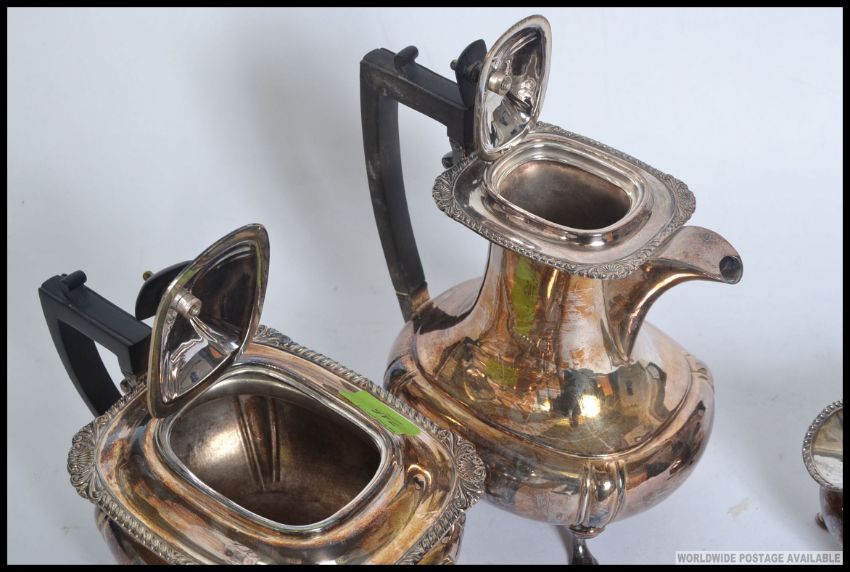 A good quality three piece silver plated tea service consisting of a teapot, coffee pot and creamer