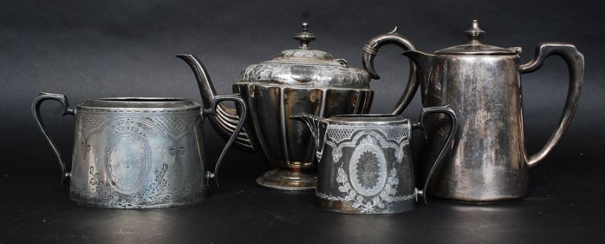 A collection of 4x silver plate pots - one engraved for The Louis, by Elkington.