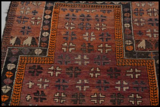 An early 20th century handwoven prayer rug. Red ground with geometric borders with niche to one end