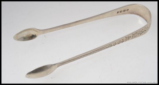 A pair of silver hallmarked sugar tongs with a Birmingham assay mark dated to 1845, 31.5g