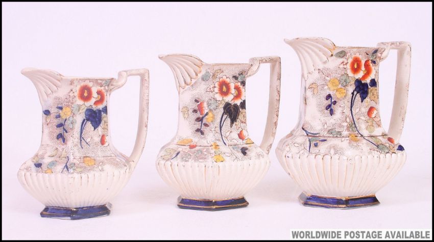 A collection of ceramic jugs to include Victorian graduating Imari pattern jugs x 3 along with 6 others to include chintz pattern, lustre etc ( 9 total )