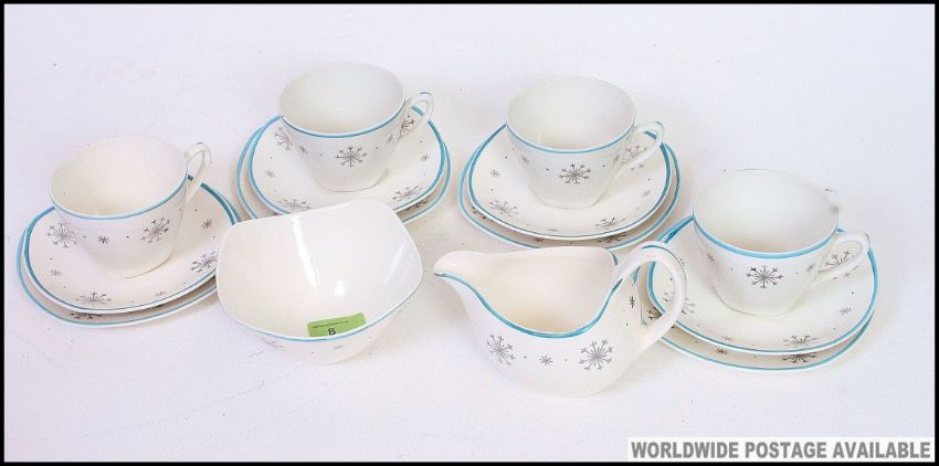 A fabulous Midwinter Modern ' Fashion Series ' 1950's part tea service comprising 4 trios, milk and sugar bowl